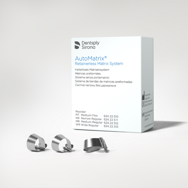 AutoMatrix Retainerless Matrix System provides a marginal seal and a form for placement of restorative material without the need for a bulky retainer. Its design is ideal for larger preparations and buccal or lingual extensions.