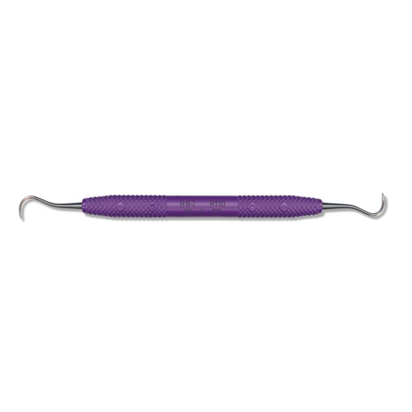 Double ended sickle scaler for use in the anterior, interproximal and premolar areas of the mouth. PDT instruments are ideally weighted, featuring the most ergonomic handle with knurling to the instrument shank to provide increased comfort with less hand fatigue and pinch. PDT's focus on ergonomics greatly reduces the development of musculoskeletal disorders.