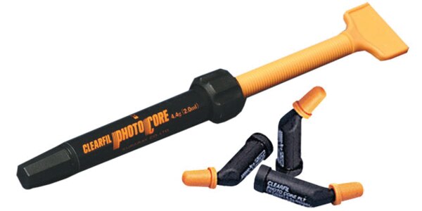 Aesthetic light-cured hybrid composite for construction of reliable core build-up. Easy handling, radiopaque, non sticky, cuts like dentin.