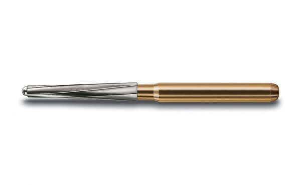 Long tapered bur creates a funnel shape for easier access in the pulp chamber. Safe-ended non-cutting tip prevens penetration of the pulp chamber floor or the root canal walls. Tungsten carbide; 9mm cutting length. 21mm overall