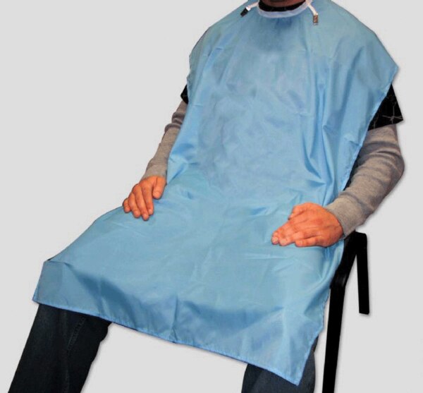 Impervious to liquids. Features two alligator clips attached to the front of the neck band to hold a disposable patient towel/bib and a touch-tab Velcro neck closure for fast and easy fastening.