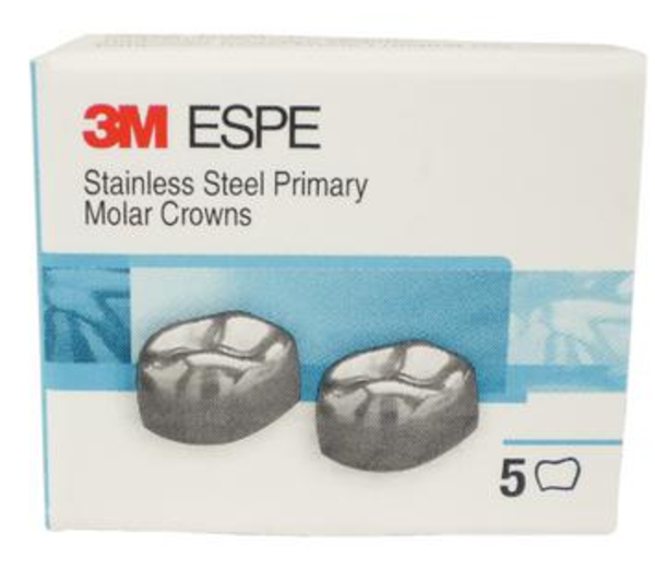 3M ESPE SS Primary Molar Crowns, D-UR-5, Upper Right First Primary Molar, Size 5, 5 Crowns