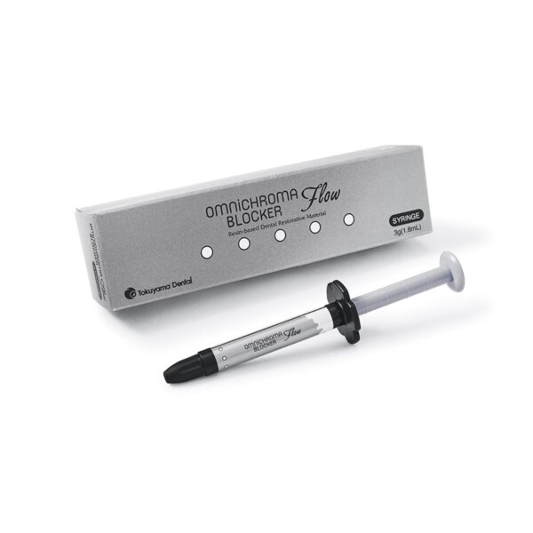 OMNICHROMA BLOCKER FLOW is a supplementary material designed for extensive class III and IV restorations or special cases that require masking stains.