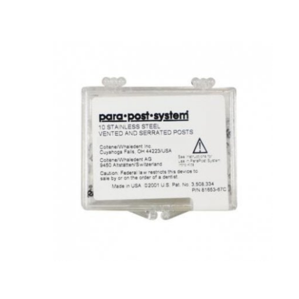 Threaded, parallel sided post with rounded, undercut head. For direct core restoration on one appointment.