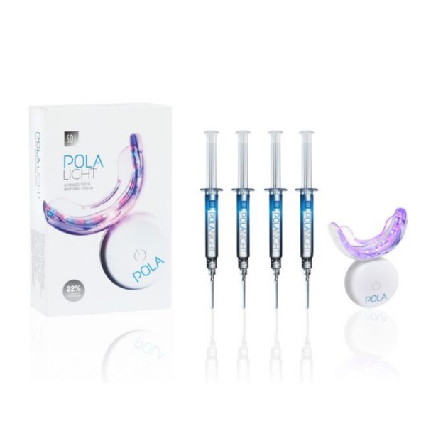 A new advanced take home tooth whitening system with led light technology. Pola Light is an advanced tooth whitening system that combines Pola’s award-winning whitening formula, with an LED mouthpiece, for a faster whitening treatment.