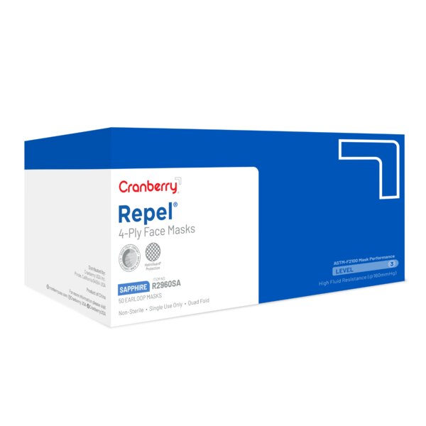 Repel 4-Ply Premium Face Mask 50/Bx Sapphire ASTM 3