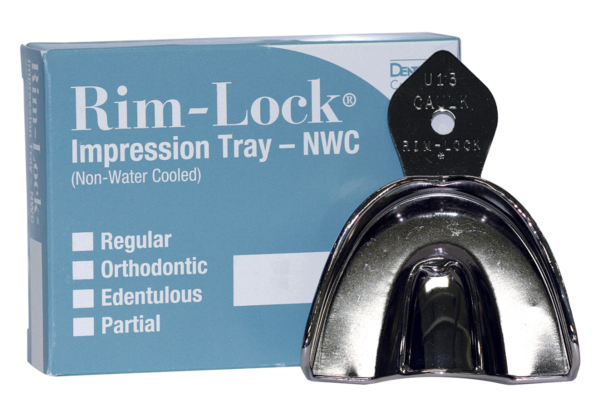 Non-water cooled metal impression trays designed to secure impression material in tray. Available in Regular Orthodonic Edentulous or Partial designs singles or complete sets.