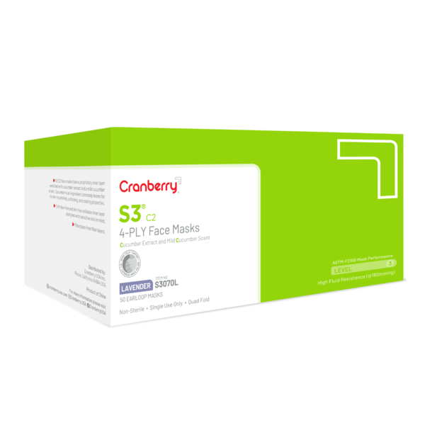 Cranberry S3 C2 Face Masks Lavender 50/Bx ASTM 3