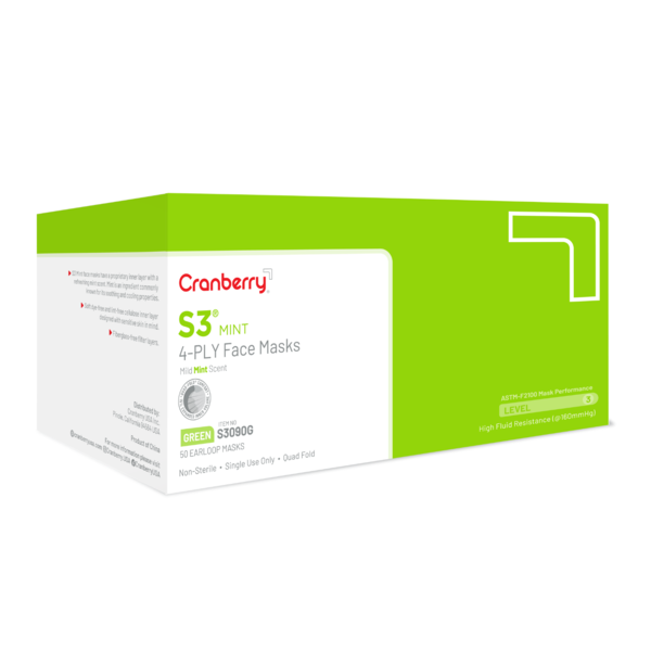 Cranberry S3 Mint Premium Face Mask 50/Bx Green ASTM 3