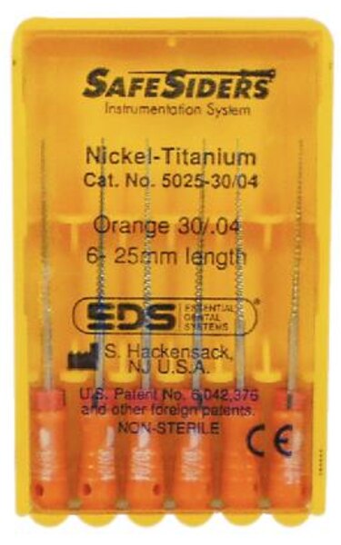 Series of patented, non-circular, non-interrupted flat-sided instruments designed to reduce endodontic stress. A high level of predictable performance, without fear of instrument fracture, eliminates procedural stress for dentists and their patients. In Nickle Titanium.