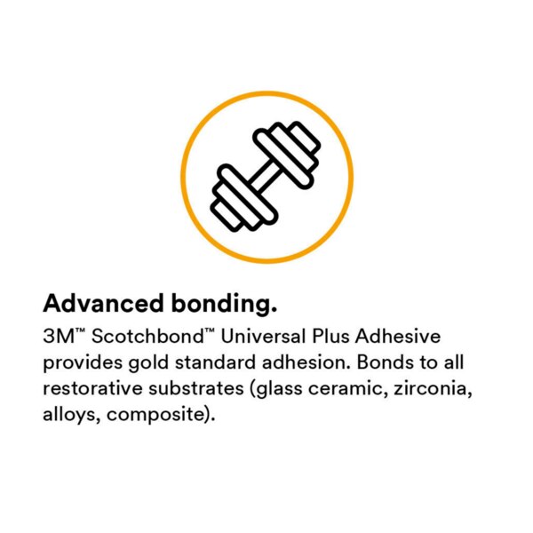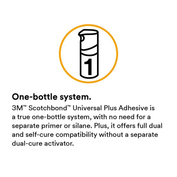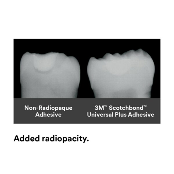 3M Scotchbond Universal Plus Adhesive is a radiopaque, single-component, light cured universal adhesive for all direct and indirect bonding indications and all etching techniques. It can also serve as a universal primer for all restoration materials.