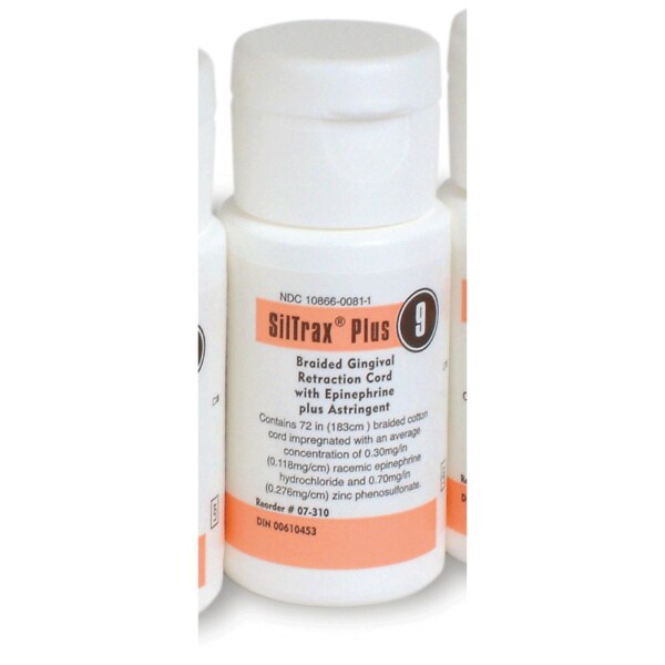 Combination vasoconstrictor and astringent action in one cord. Impregnated with a solution containing both epinephrine hydrochloride and zinc phenolsulfonate, then dried by a special process. Assures optimal retraction. Epinephrine strength is 55%-70% less than SilTrax EPI.