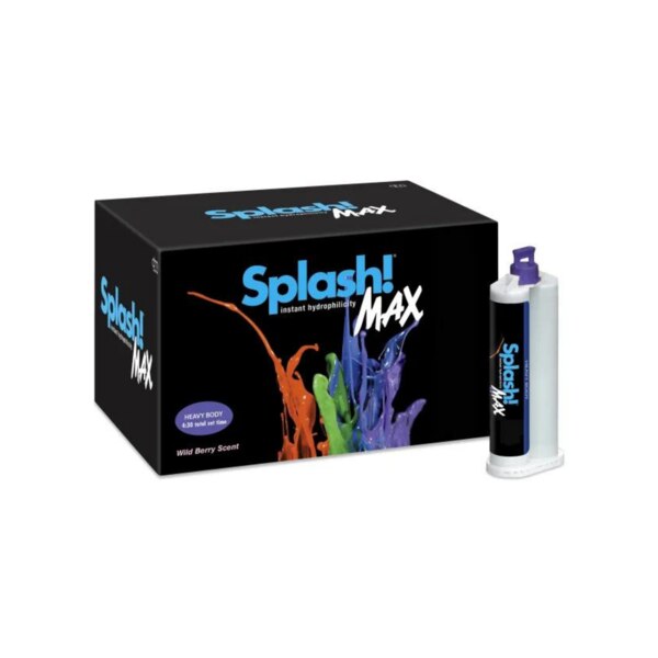 Splash Max® Regular Set Heavy Body Bulk Kit premium VPS impression material boasts a low contact angle combined with high tear strength. With 99% recovery after stretching and compression, the results are highly detailed and accurate impressions delivering maximum performance with fewer retakes.
