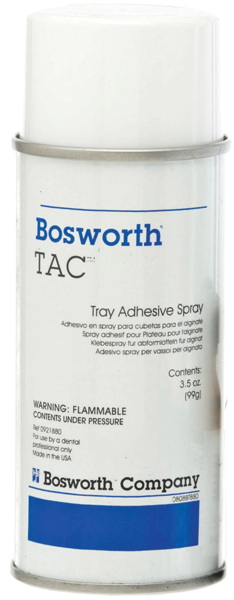 A tray adhesive compound available in convenient spray cans or brush-on liquid for use with alginate impression materials.