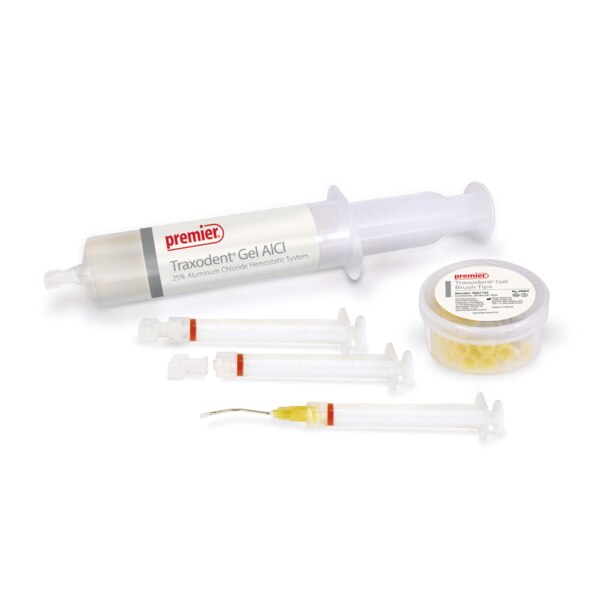 Traxodent® Gel AlCl delivers fast, reliable hemostasis and sulcular fluid control. The clear non-staining formula rinses clean and does not leave a residue that can interfere with impressions, bonding and cementation procedures. Use Traxodent Gel AlCl for crown & bridge, composite restorations, impressions, or anytime hemostasis is required.