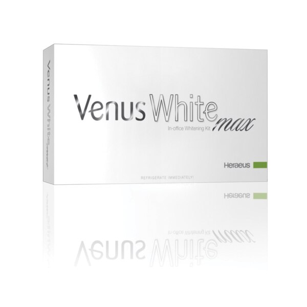 Venus White Max by Heraeus is a tooth whitening system that utilizes a 38% hydrogen peroxide formulation.