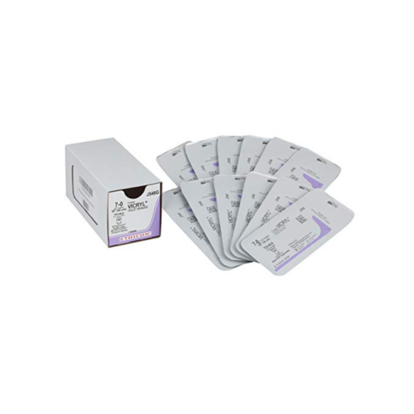 - Synthetic absorbable, size 7-0, violet braided, 18" x 18" (45 cm x 45 cm) bidirectional suture